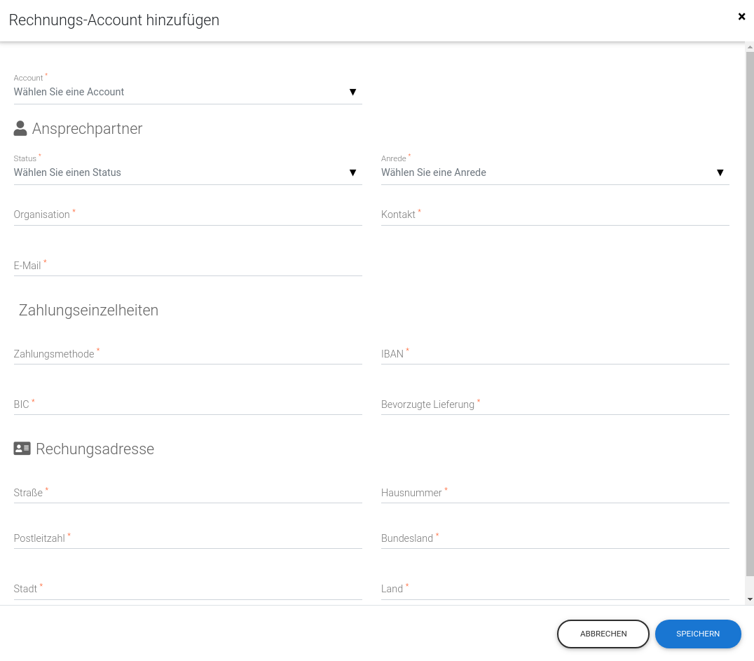 Über den Button Rechnungs-Account hinzufügen können Sie einen neuen Rechnungsaccount erstellen.