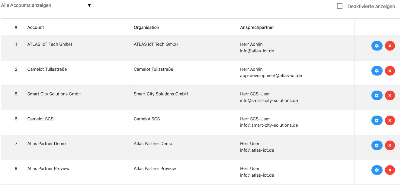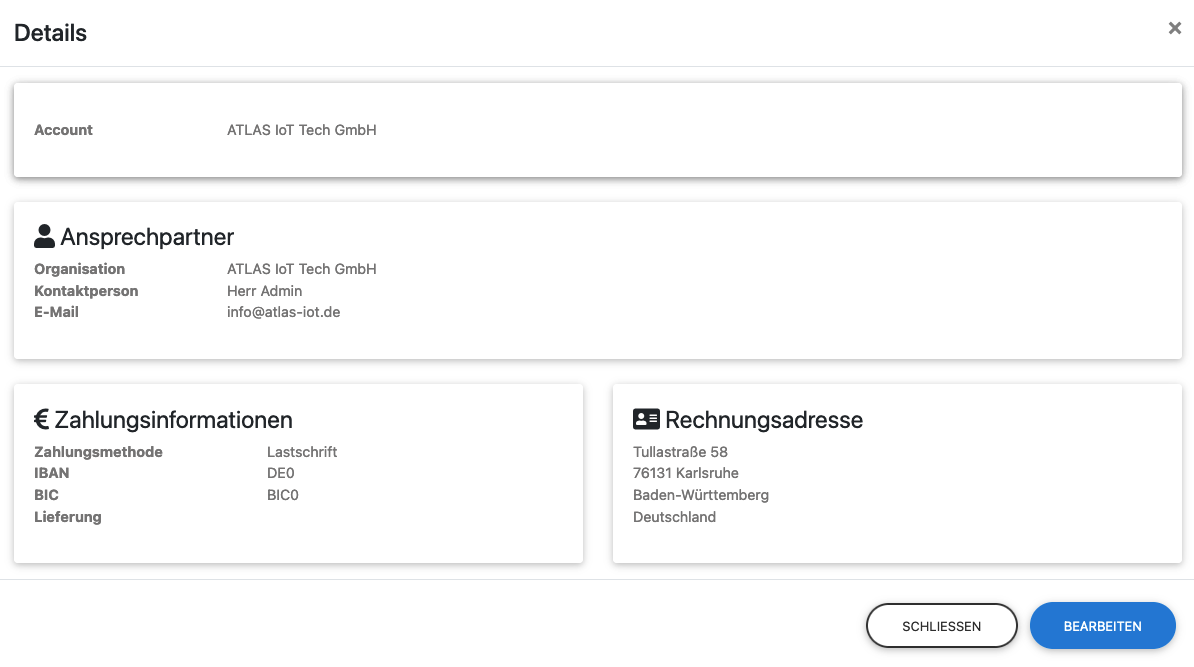 Details eines Rechnungsaccounts können mit dem Zahnrad-Button neben jedem Rechnungsaccount angesehen oder bearbeitet werden.