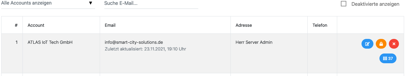 Über den Bearbeiten-Button neben jedem Nutzer können die Details (E-Mail, Name, Adresse, Telefonnummer, Funktion) eines Nutzers eingesehen und bearbeitet werden. Ausserdem können Sie Zugriffsberechtigungen für Module anpassen.
